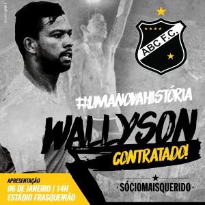 O ABC apresentará na tarde de hoje 6 no Frasqueirão a volta do seu ídolo Wallyson, antes da 1ª partida amistosa que o ABC realizará antes do campeonato estadual, que acontecerá as 15:00 horas contra uma seleção amadora do Trairi.